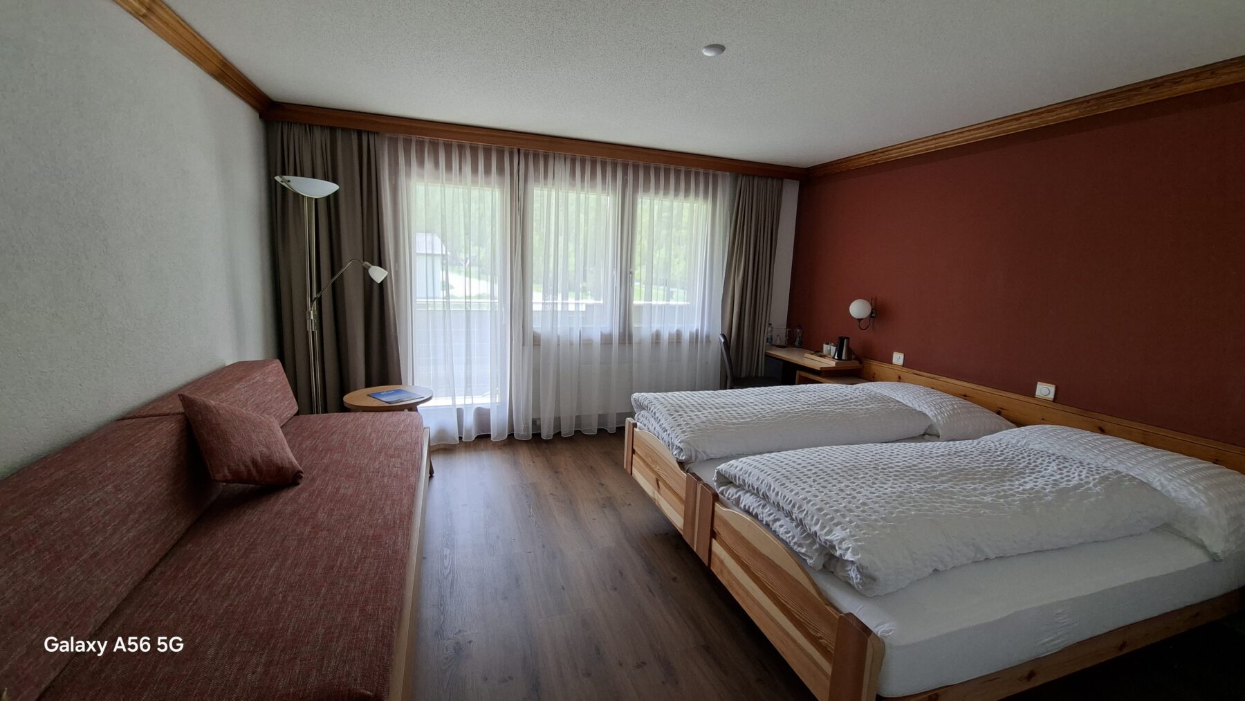 Heimelige Zimmer (Twin-Betten) in wohltuenden Farbtönen mit hellen Eschenholz mit Dusche/WC/Föhn, Balkon, Radio, Direktwahltelefon, Flachbild-TV mit Radio- und Satprogrammen, Zimmersafe, Gratis-WIFI im Zimmer und Welcome-Tray. Preise >